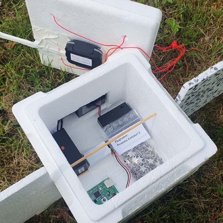 Vor jedem Flug verstauen wir ca. 200 Sterne in eine Styroporbox (Sonde).